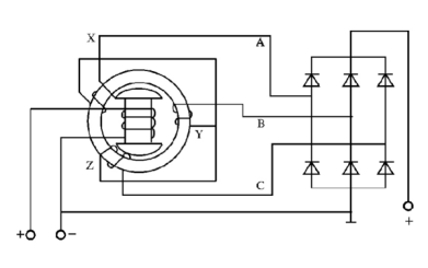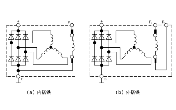 如圖B(a)所示,發(fā)電機(jī)磁場繞組的一端與發(fā)電機(jī)殼體連接的交流發(fā)電機(jī)。