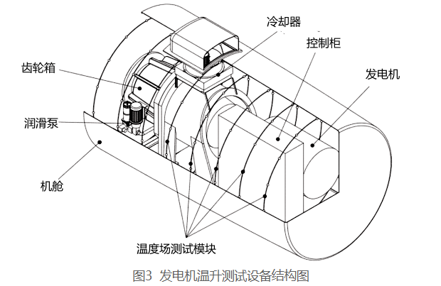 發(fā)電機組的溫升是指某一點的溫度和參數(shù)溫升之差,其設(shè)備外形如圖1所示。發(fā)電機組溫升是指發(fā)電機某部件和周圍冷卻介質(zhì)溫度的差別。溫升過高,則表示發(fā)電機有故障。也就是說,發(fā)電機組上升的溫度中超過周圍空氣的溫度的這一部分溫度稱為溫升,溫升的單位為K。在國家標(biāo)準,旋轉(zhuǎn)電機定額和性能中明確規(guī)定:發(fā)電機組在額定負載下長期運行達到熱穩(wěn)定狀態(tài)時,其極限溫度為130℃,考慮其風(fēng)冷器的出口溫度為40℃,則發(fā)電機組繞組的最大允許溫升為85K,但是在實際運行中,由于減溫計可能存在一定的誤差,所以發(fā)電廠實際運行中所控制的溫升為75K。在運行過程中,同步發(fā)電機溫度或溫升過高的原因包括以下方面: