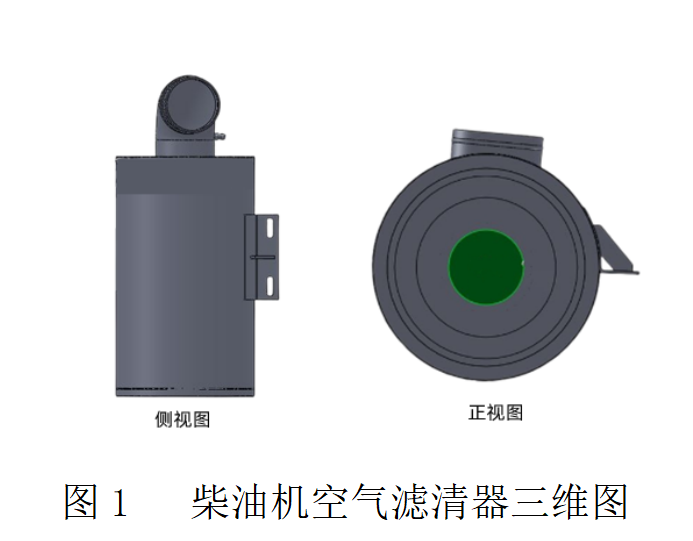 空氣濾清器的功用是濾除空氣中的灰塵及雜質(zhì),將清潔的空氣送入氣缸內(nèi),以減少活塞連桿組、配氣機構(gòu)和氣缸磨損。對空氣濾清器的要求是濾清效率高、阻力小、應(yīng)用周期長且保養(yǎng)方便,外形三維圖如圖1所示。