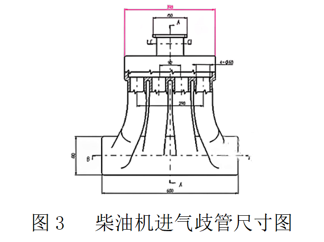 對于直噴式柴油機,進氣歧管只是將潔凈的空氣分配到各缸進氣道,如圖3所示。進氣歧管必須將空氣、 燃油混合氣或潔凈空氣盡可能均勻地分配到各個氣缸,為此進氣歧管內(nèi)氣體流道的長度應(yīng)盡可能相等。為了減小氣體流動阻力,提高進氣能力,進氣歧管的內(nèi)壁應(yīng)該光滑。